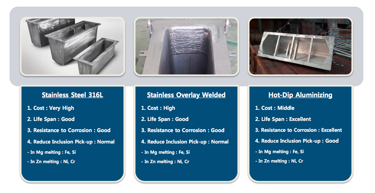 If an ordinary steel is heated over 550°C, scale is generated rapidly and finally the steel is vanished. In experiment, if an ordinary steel plate of 3.2m/m is heated in 1,000°C in becomes scale and in vanished in 32 hours. Also of an aluminized steel if heated under the same temperature of 1,000°C it can stand 364 hours and is identified to have about times of resistance to heat. When it is used if the actual factory it can be influenced by fuel, the structure of bath, temperature in use rapid cooling and rapid cooling and rapid heating etc. According to foreign statistic data, it has about 3~7 times of resistance.